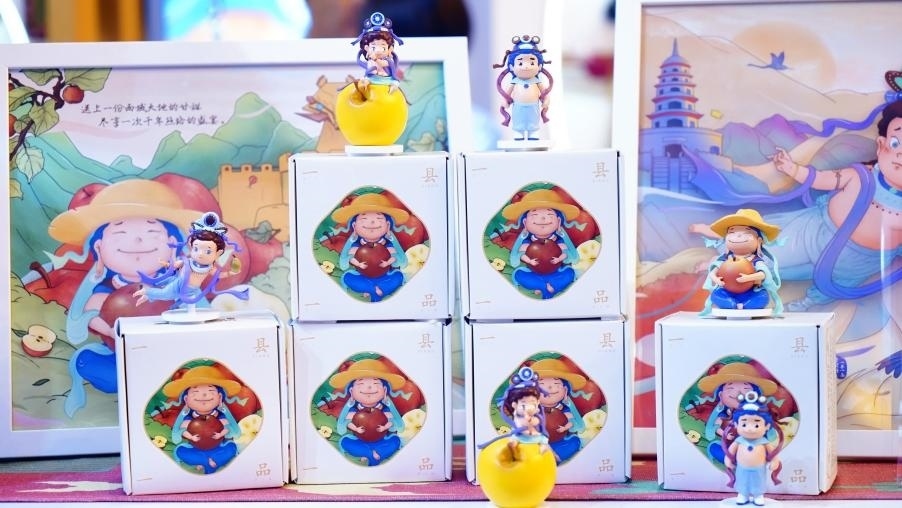 在新疆展館,數(shù)字文創(chuàng)IP“龜茲寶寶”發(fā)揮著具有高度代表性的文化紐帶作用,推動粵疆兩地文化交流與交融。華昊文化科技集團董事長盧曉鴻介紹,“龜茲寶寶”是以龜茲石窟壁畫為靈感,結合現(xiàn)代化美學而成的數(shù)字IP。