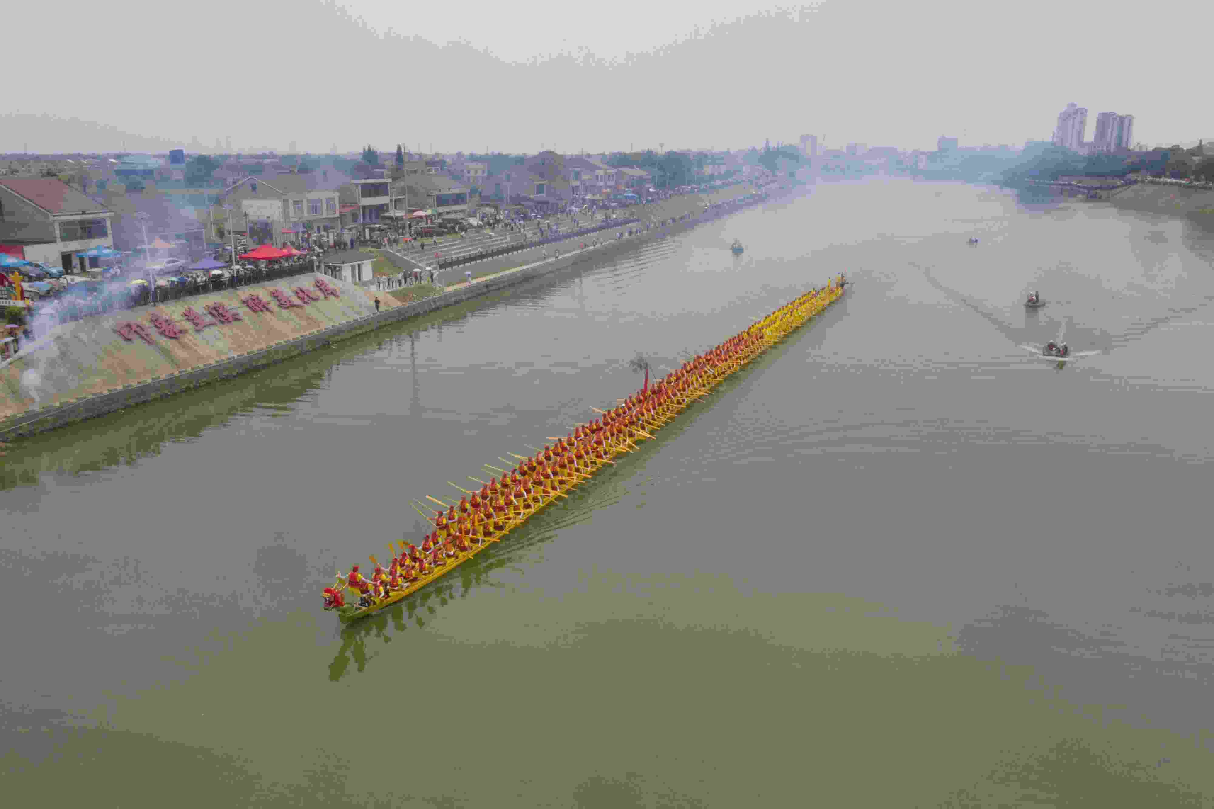 湖南益陽(yáng)舉行“百米龍舟”登江儀式