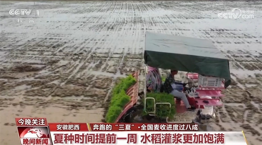 央視網(wǎng)消息:農業(yè)農村部小麥機收調度顯示,當前全國已收獲冬小麥面積達2.53億畝,進度過八成。與此同時,夏種也正在壓茬推進。