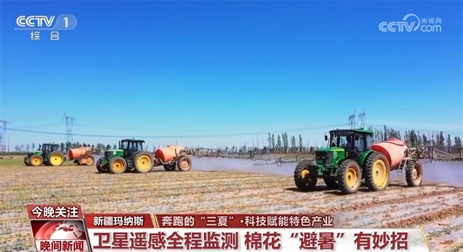 眼下,新疆昌吉瑪納斯縣的棉花正值現(xiàn)蕾期?,F(xiàn)蕾期指的是出現(xiàn)花蕾到開花這一段時間,這個時候棉株生長最快,然而持續(xù)的高溫給田間管理帶來考驗。在瑪納斯縣樂土驛鎮(zhèn)的棉花田里,三臺裝有北斗導航系統(tǒng)的大馬力拖拉機正按照預先設定的線路進行除草作業(yè)。這是農技人員通過衛(wèi)星遙感棉花全程監(jiān)測技術,幫種植戶制定的科學田管方案。