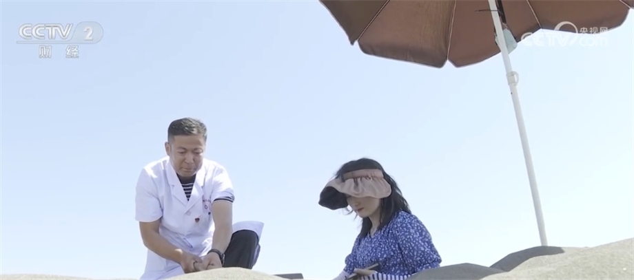 連日來(lái)的高溫天氣讓新疆吐魯番掀起了沙療“熱”。沙療是利用當(dāng)?shù)鬲?dú)特的光熱資源和氣候地理?xiàng)l件進(jìn)行的治療方式,讓高溫天氣成為了當(dāng)?shù)厝罕娫鍪罩赂坏摹盁豳Y源”。