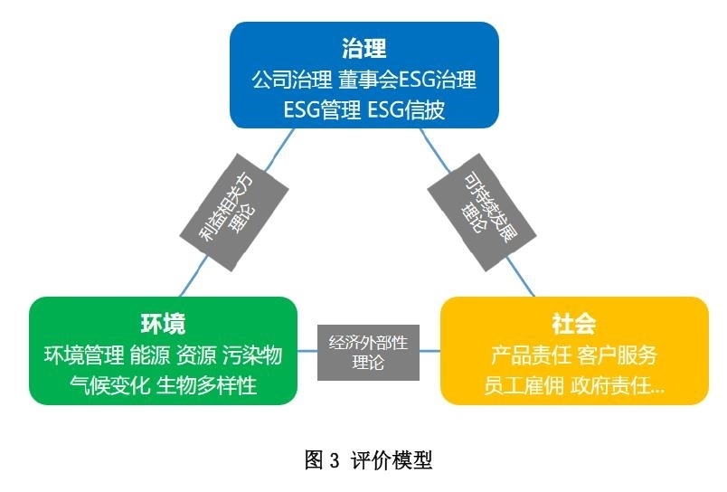 基于此,我們在構(gòu)建ESG評價模型時,打破現(xiàn)有主流ESG評級體系重點關(guān)注ESG風(fēng)險管理(即企業(yè)的負(fù)外部性)的常規(guī)思路,將企業(yè)經(jīng)營發(fā)展對社會環(huán)境的正向價值與貢獻(即企業(yè)的正外部性)納入考量,創(chuàng)新構(gòu)建了包含“環(huán)境、社會、治理”三個維度且兼顧風(fēng)險管理和社會價值貢獻的ESG評價模型(見圖3)。