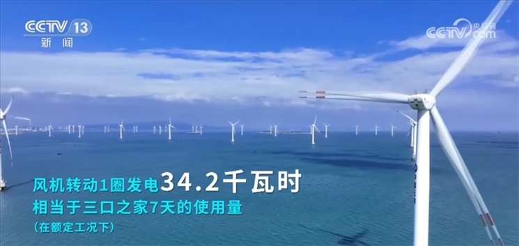 風(fēng)機(jī)轉(zhuǎn)動1圈發(fā)電34.2千瓦時,相當(dāng)于三口之家7天的使用量(額定工況下),1小時發(fā)電1.6萬千瓦時,相當(dāng)于每分鐘發(fā)電267千瓦時(額定工況下)。