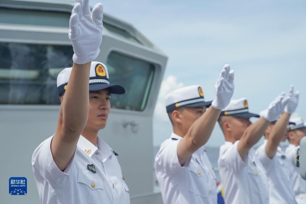 6月14日,在菲律賓馬尼拉港,戚繼光艦船員向前來迎接的群眾揮手致意。