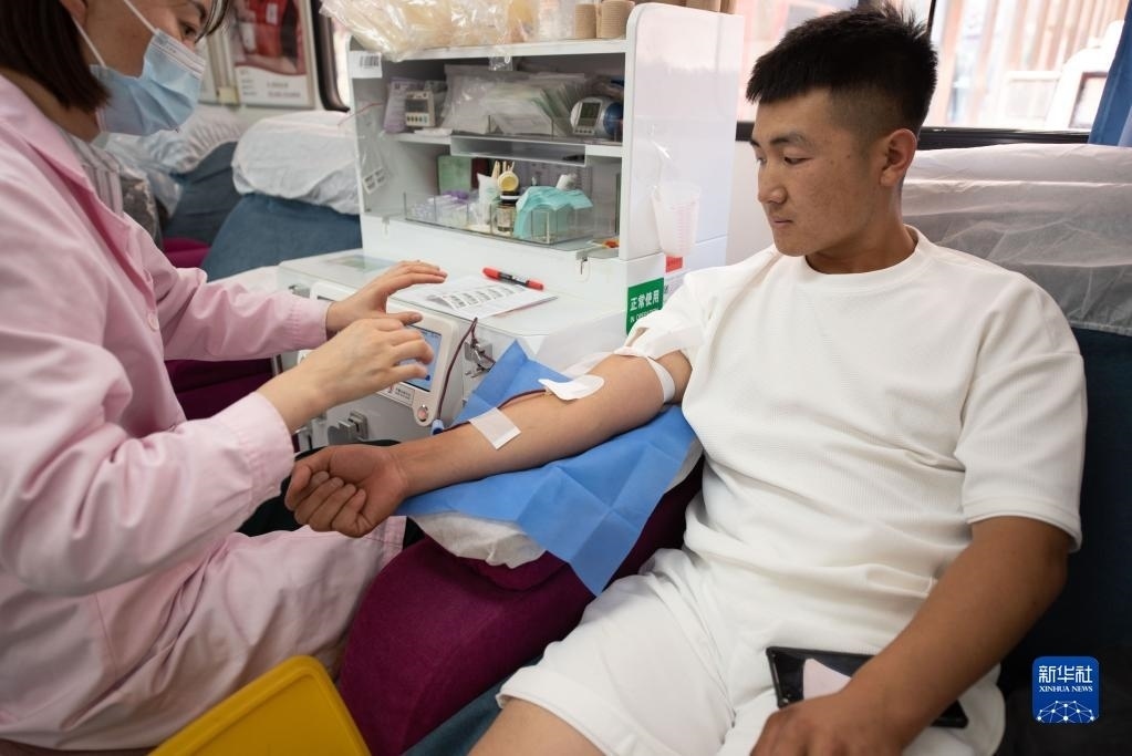 6月14日,市民在云南省麗江市祥和商業(yè)廣場的流動獻血車內(nèi)獻血。 新華社發(fā)(趙慶祖攝)