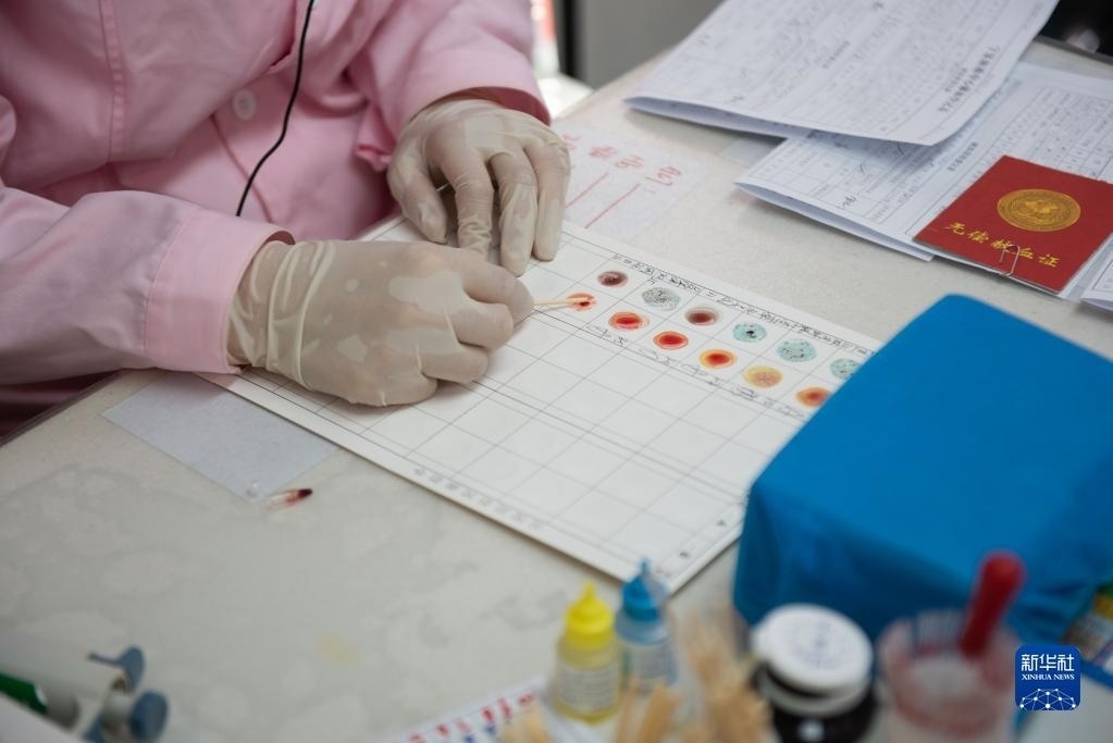 6月14日,市民在安徽省合肥市肥東縣血站無償獻血室進行獻血前檢驗。
