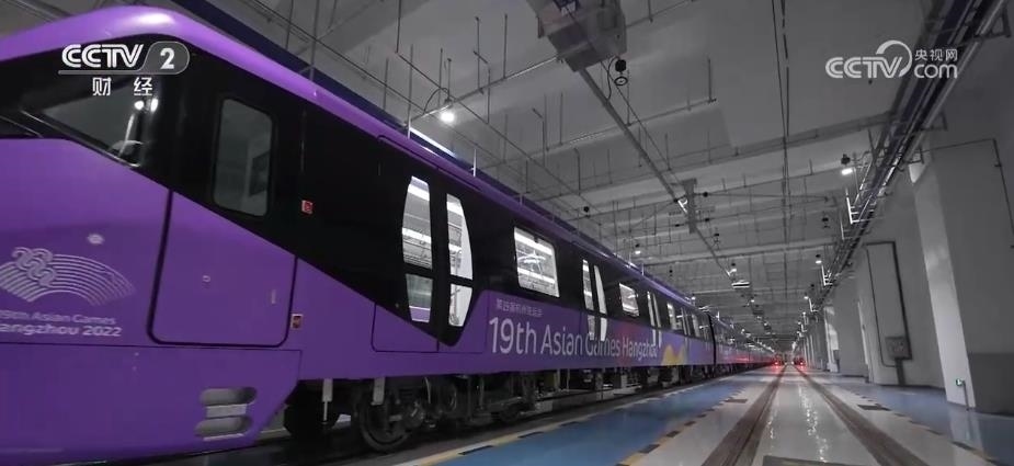 在杭州,5列亞運(yùn)主題地鐵列車正式投入運(yùn)營。車身以及車廂內(nèi)的座椅、扶手,均為亞運(yùn)會(huì)色系中的“虹韻紫”。