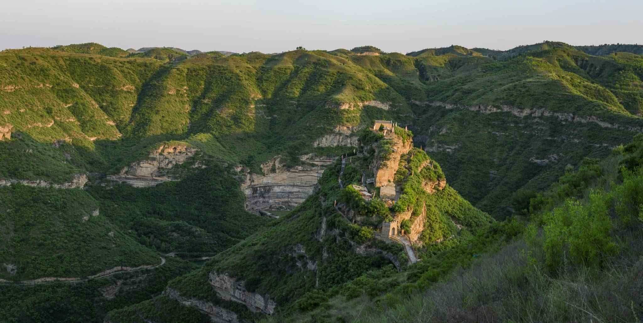 2023年6月14日,陜西省延安市,延川縣乾坤灣鎮(zhèn),晨曦映照會(huì)峰寨。視覺中國