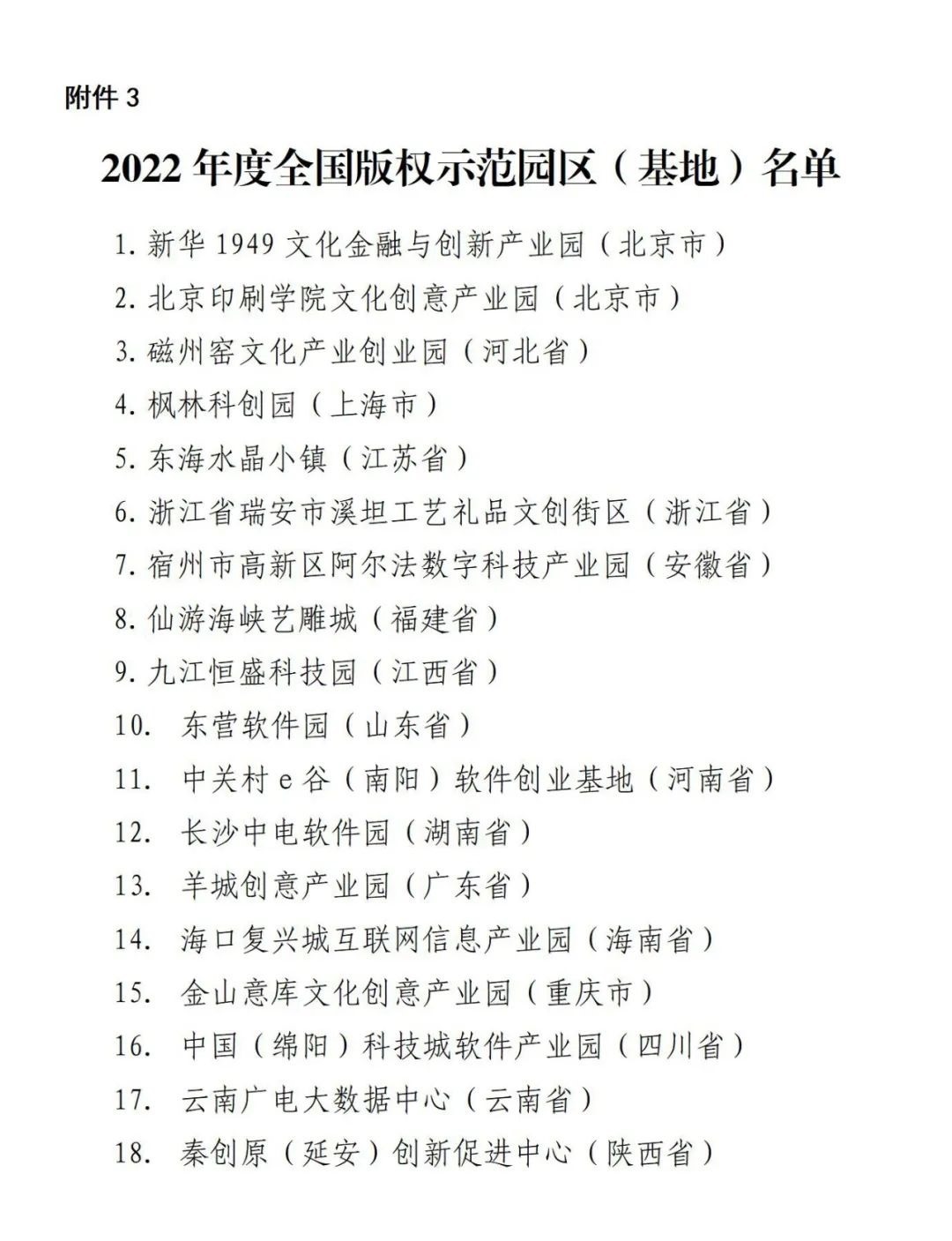 3.2022年度全國(guó)版權(quán)示范園區(qū)(基地)名單