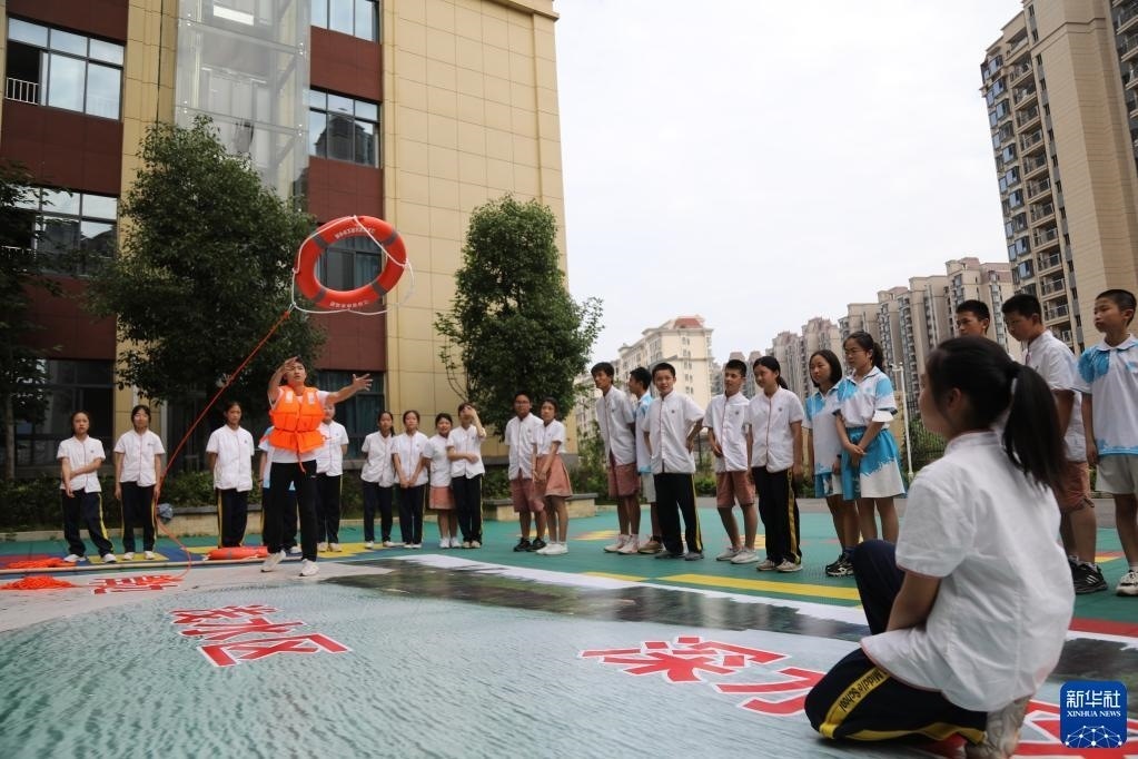 暑期臨近,江西省南昌市各縣區(qū)中小學(xué)校紛紛開展暑期安全教育主題活動(dòng),通過防溺水安全主題班會(huì)、安全知識(shí)培訓(xùn)、自救技能培訓(xùn)等方式提升學(xué)生的安全意識(shí)與防范危險(xiǎn)能力,讓孩子們度過一個(gè)安全快樂的假期。新華社記者 彭昭之 攝