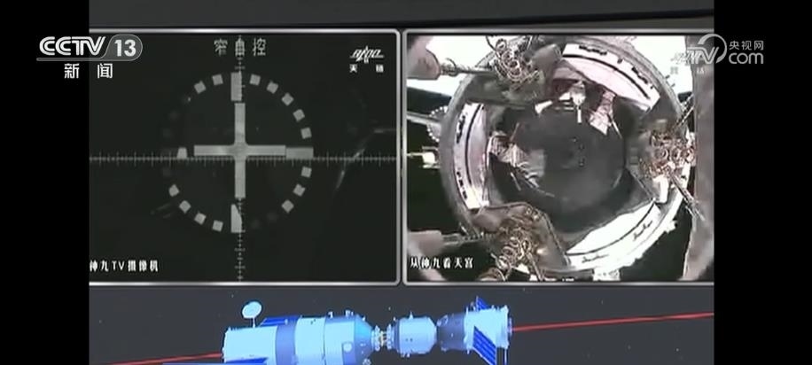 2012年6月24日,天宮一號(hào)與神舟九號(hào)實(shí)施分離操作,神舟九號(hào)飛船來到140米停泊點(diǎn),12時(shí)42分,神舟九號(hào)從自動(dòng)控制狀態(tài)轉(zhuǎn)為手動(dòng)控制。在景海鵬和劉洋的配合下,劉旺手動(dòng)操控重量超過8噸、長達(dá)9米的神舟九號(hào)飛船,以“百米穿針”的中國精度,成功完成了首次手控交會(huì)對接。