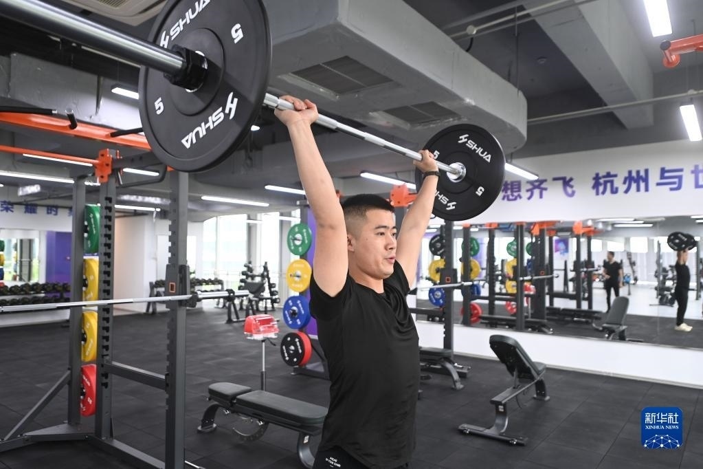 這是6月16日拍攝的杭州亞運(yùn)村健身中心內(nèi)景。健身中心設(shè)置有氧運(yùn)動(dòng)區(qū)、爆發(fā)力訓(xùn)練區(qū)、拉伸恢復(fù)區(qū)、綜合器械區(qū)及功能性訓(xùn)練區(qū),可容納約350名運(yùn)動(dòng)員同時(shí)使用。