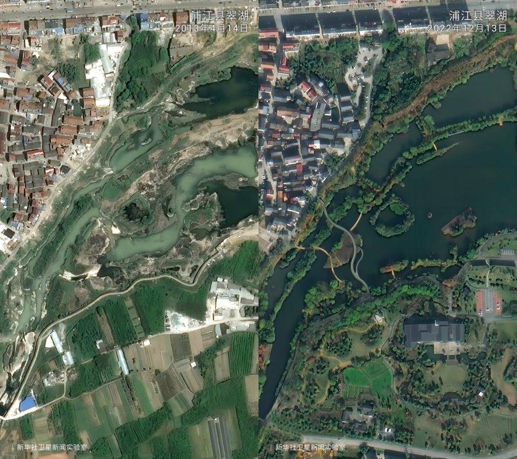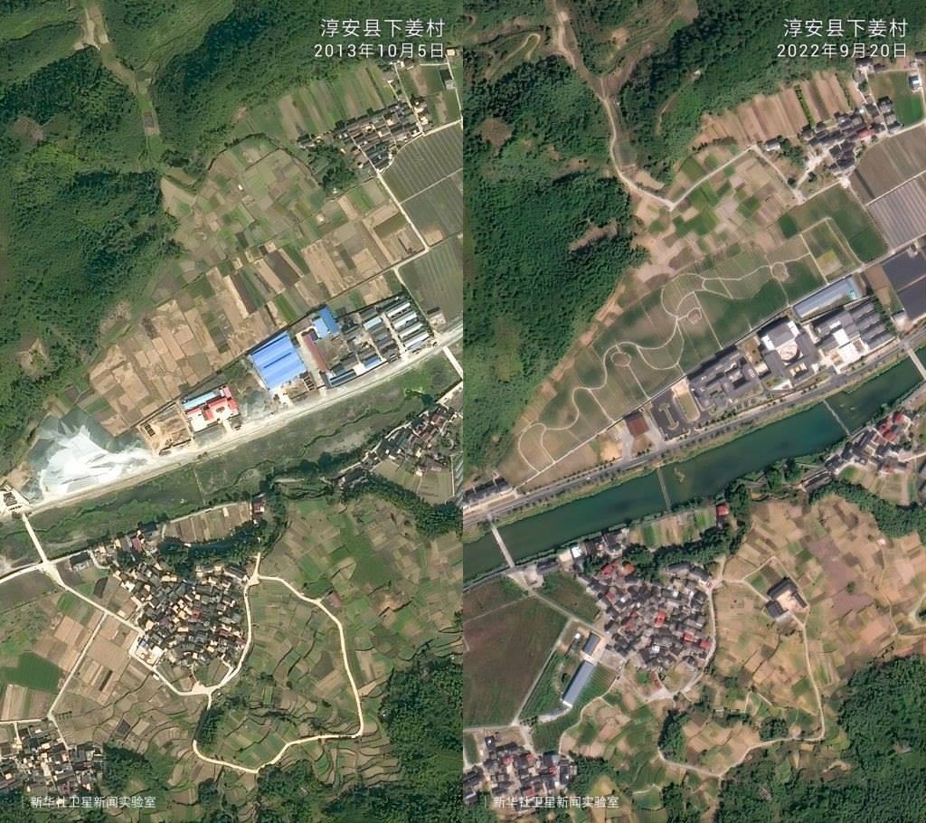 一組組衛(wèi)星對比圖見證了歲月流轉(zhuǎn)中的鄉(xiāng)村巨變。放眼浙江廣闊大地,這場跨越20年的美麗接力正煥發(fā)新的生機(jī)。