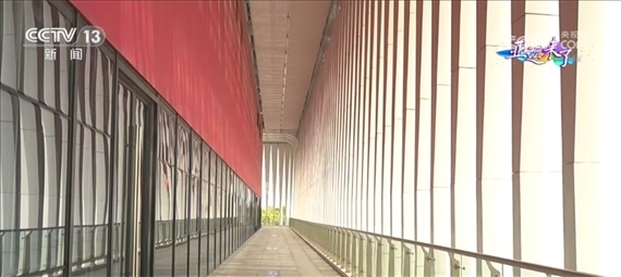 總臺央視記者 任梅梅:現(xiàn)在我們就來到了手球館室外的二層平臺,進(jìn)入了“水?!钡膬?nèi)部,這一條條垂著的“水?!逼鋵嵅粌H僅是裝飾品,更有著實際的作用,它們就像百葉窗一樣,能夠起到隔熱的效果,另外還可以減少眩光,提高室內(nèi)視覺的舒適度。