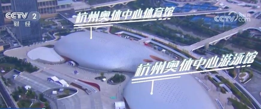 現(xiàn)在我們看到的場館猶如蝴蝶張開翅膀,靠近錢塘江一側(cè)的是杭州奧體中心游泳館,它是僅次于“水立方”的全國第二大游泳跳水館,另一側(cè)是杭州奧體中心體育館。