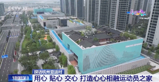交心——賽場內(nèi)是體育的競技,賽場外的運動員村也就成為各國文化交流的平臺。在亞運村“C位”的國際區(qū),幾棟樓宇的外墻是一幅由富春山居圖演繹而來的巨型山水畫。