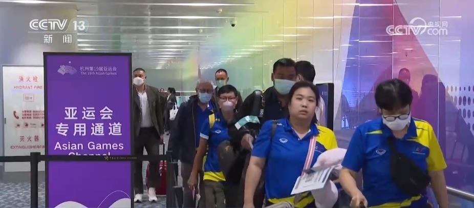 整個亞運會期間,預(yù)計有來自40多個國家和地區(qū)的亞運代表團通過杭州機場入境。除了代表團之外,還將有各國的亞運媒體轉(zhuǎn)播商,總?cè)藬?shù)預(yù)計將超過2萬人。9月16日,距離亞運會開幕還有整整7天的時間,將迎來一個代表團到達的小高峰。9月16日上午8時,一趟來自泰國曼谷的飛機經(jīng)過了4個多小時的飛行,搭載著近70名亞運代表團成員飛抵杭州。