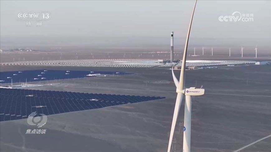 新疆生產(chǎn)建設(shè)兵團第十三師新星市發(fā)改委主任龍剛:“我們新星市光伏和風(fēng)電的裝機總?cè)萘窟_到了240萬千瓦,2022年風(fēng)電和光伏總發(fā)電量是38億度電,相當(dāng)于減排二氧化碳300萬噸左右。”