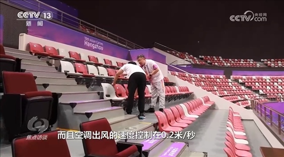馮晶:“因為乒乓球項目對風速有嚴格要求,我們的空調吹風口在每個座位下方,而且空調出風的速度控制在0.2米/秒,這樣不僅可以控制整個風速,而且整個是分布式控制系統(tǒng),這片區(qū)域如果沒有觀眾,那么這片區(qū)域的空調可以不啟用,可以實現(xiàn)節(jié)能。”