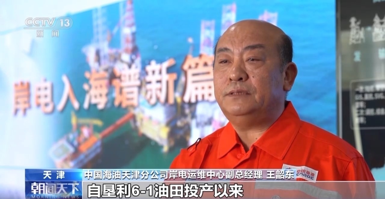 中國(guó)海油天津分公司岸電運(yùn)維中心副總經(jīng)理 王韶東:自墾利6-1油田投產(chǎn)以來,岸電應(yīng)用工程已累計(jì)供電約3800萬度。按照設(shè)計(jì)規(guī)模,岸電三期工程全部投用后,渤海油田約75%的海上平臺(tái)將實(shí)現(xiàn)岸電供給。