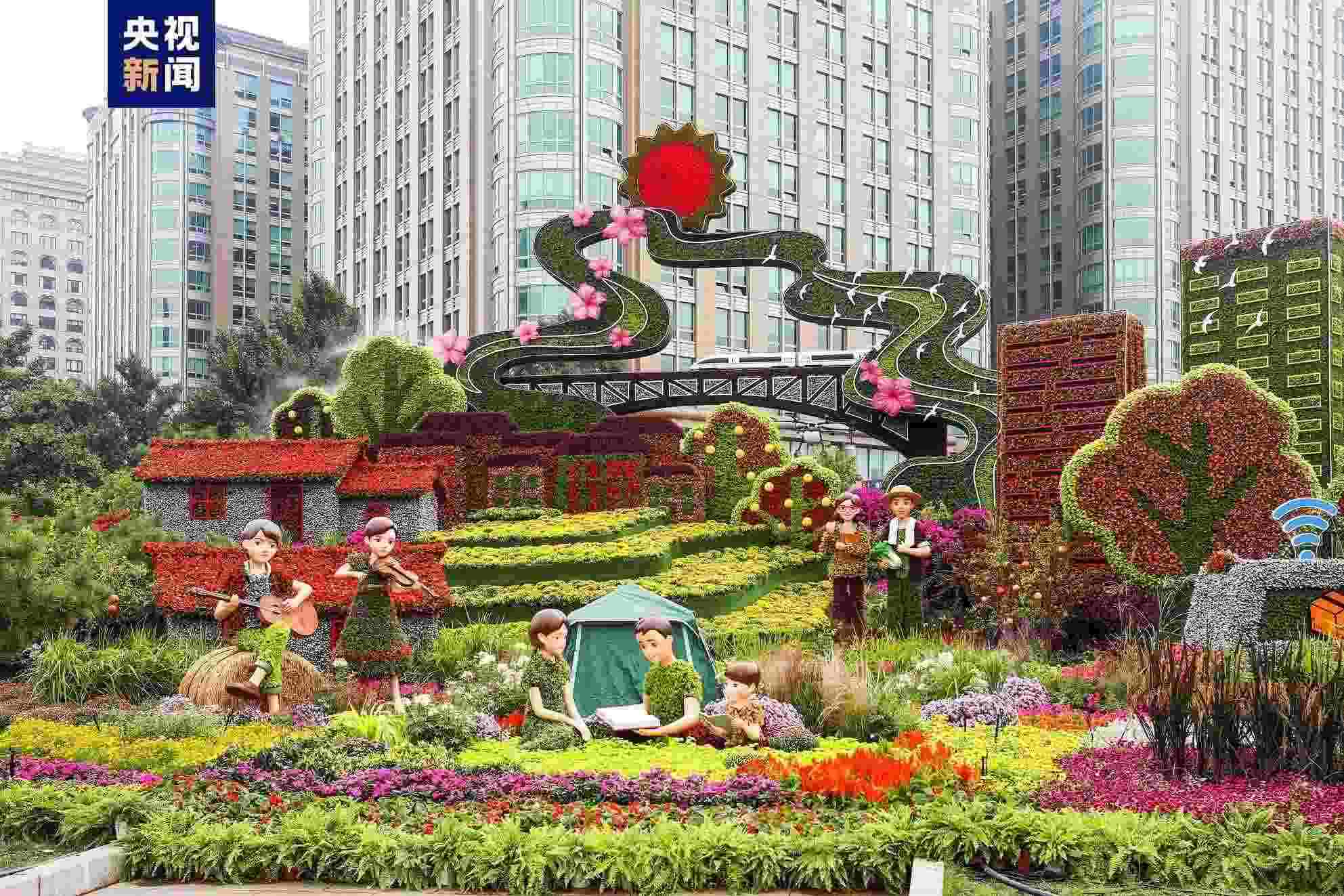 今年廣場花籃首次裝入象征豐收的五谷元素(水稻、小麥、小米、黃米、大豆),花籃內(nèi)的花卉等部件均使用阻燃、抗風(fēng)材料進(jìn)行3D打印,有效保障安全性、穩(wěn)定性和觀賞性。廣場兩側(cè)綠地布置5050平方米吉祥如意花帶圖案,花球18個。長安街建國門至復(fù)興門之間布置10組不同主題的立體花壇,50多個國內(nèi)自主知識產(chǎn)權(quán)新品種、國外引進(jìn)新品種和鄉(xiāng)土植物在長安街花壇中首次應(yīng)用,描繪出全面推進(jìn)中華民族偉大復(fù)興的宏偉藍(lán)圖和人民群眾不斷提升的獲得感、幸福感的美好畫面。長安街、三里河路、阜成路、機(jī)場路四條重點(diǎn)道路布置容器花卉100組、地栽花卉2萬余平方米、花拱花球40余個,為市民游客營造花團(tuán)錦簇的節(jié)日氛圍。