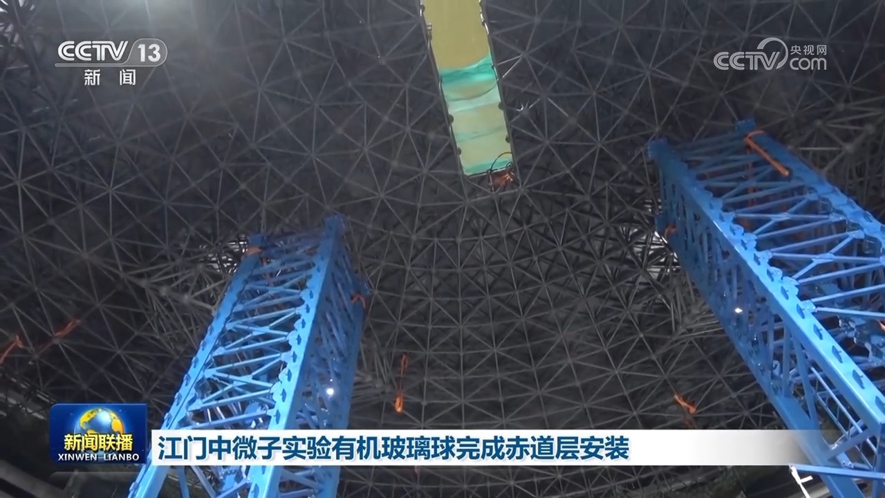 央視網(wǎng)消息(新聞聯(lián)播):大科學(xué)裝置江門中微子實(shí)驗(yàn)正在緊張建設(shè)中,位于地下700米的中心探測器日前完成了世界最大單體有機(jī)玻璃球赤道層的安裝,探測器整體工程過半。