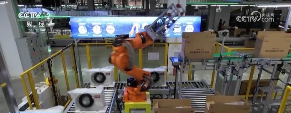 在武漢,一個空調(diào)智能制造基地里,全球首條無塵新風空調(diào)專用生產(chǎn)線上,智能制造元素隨處可見,上百臺機器人正24小時連續(xù)作業(yè)。在工廠里,記者還發(fā)現(xiàn)這里到處都是大大小小的顯示屏,總數(shù)量達到了800多塊,大約每3個工人就擁有1塊屏幕。