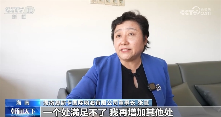海南澳斯卡國(guó)際糧油有限公司董事長(zhǎng) 張慧:就有一種熱情,能干成。實(shí)際上我已經(jīng)60多歲了,之前已經(jīng)退休了,但是為了自貿(mào)港,我說(shuō)我還愿意再工作20年。