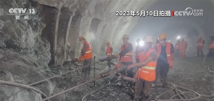 總臺記者 劉文杰:現(xiàn)在是5月10日,工人們正在進行的作業(yè)是對隧道的支護進行拆換,整個拆換作業(yè)現(xiàn)在只剩最后的30米,可以說,整個隧道的建設(shè)也進入了沖刺階段。