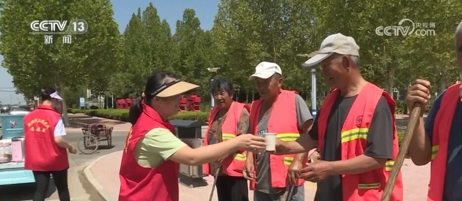 在德州市陵城區(qū),當?shù)卦O(shè)置了歇腳驛站,為戶外工作者提供納涼的地方。同時,志愿者們走進田間地頭、街頭巷尾,為戶外工作者們送去綠豆湯、礦泉水等解暑降溫物品。