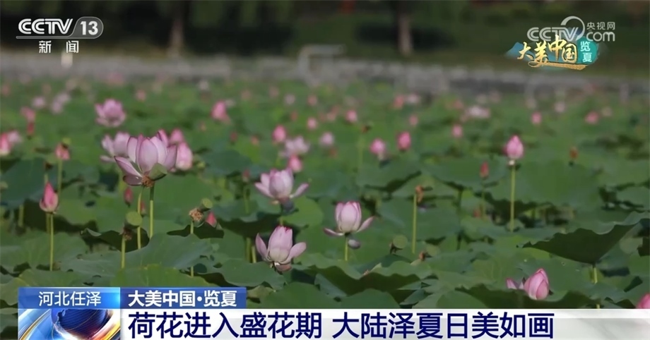 跟隨鏡頭,我們來到河北邢臺的大陸澤國家濕地公園。炎炎夏日,這里碧波蕩漾、清風(fēng)拂柳,水汽繚繞的湖面偶有飛鳥掠過。此時節(jié),大陸澤也迎來了荷花的最佳觀賞期。風(fēng)起時,荷田微漾、葉如綠波、花若紅云,不時有蜻蜓在荷間嬉戲,相映成趣。
