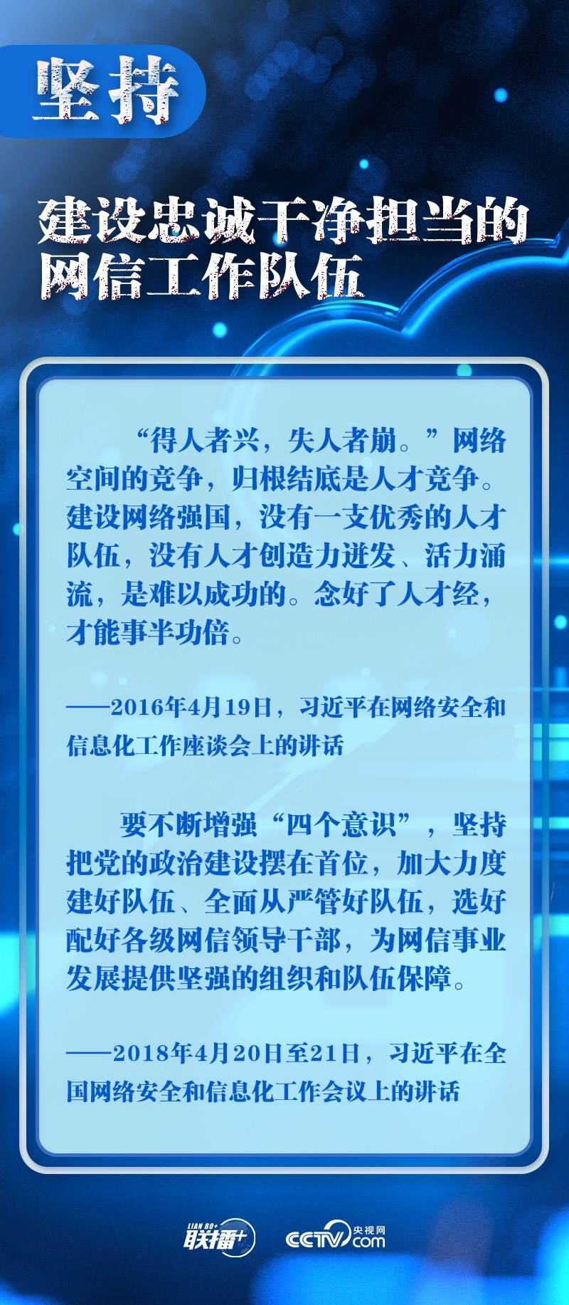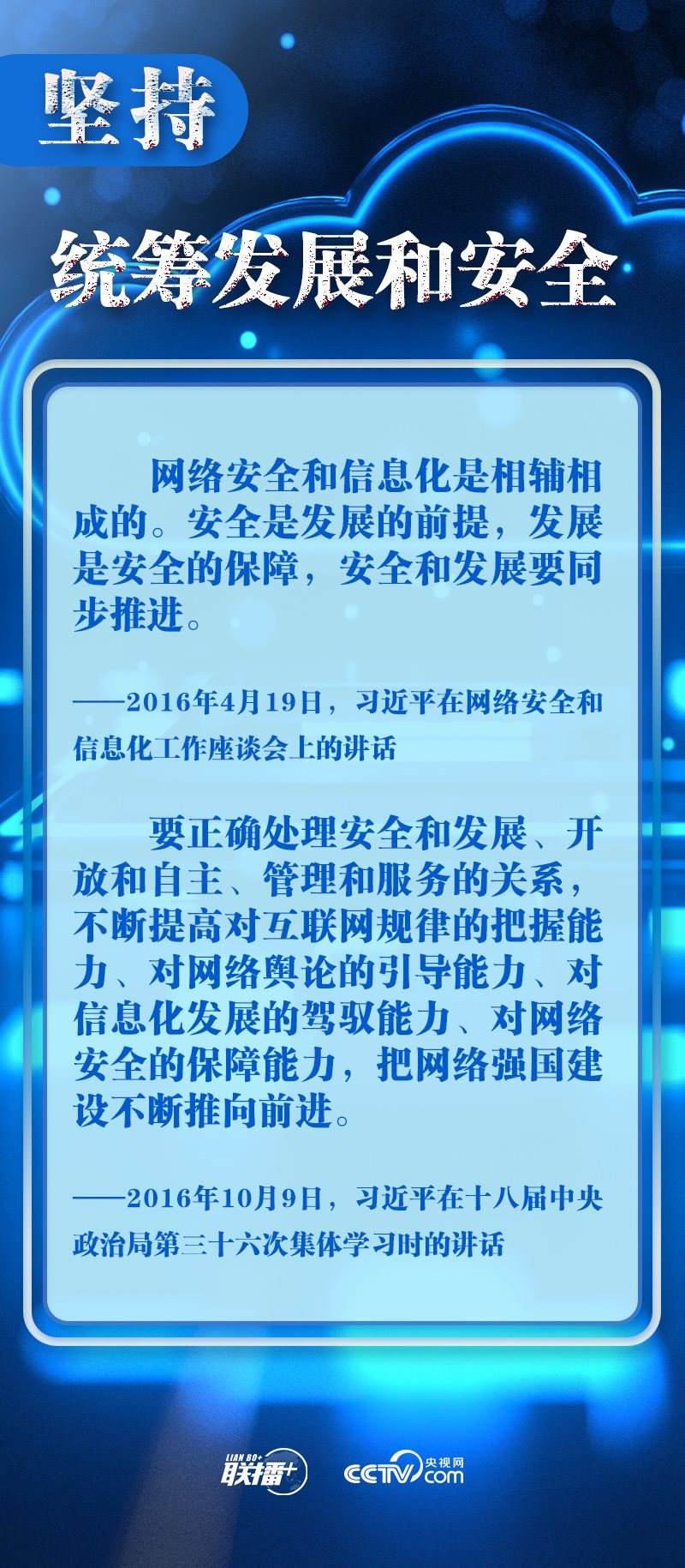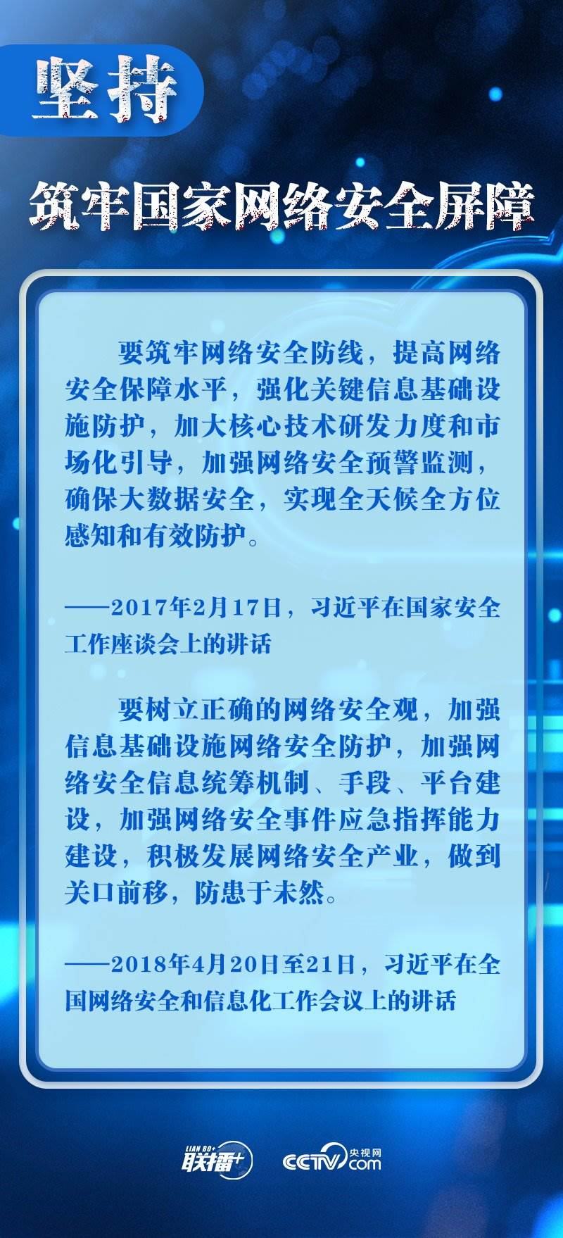 新時(shí)代新征程,網(wǎng)信事業(yè)的重要地位作用日益凸顯。央視網(wǎng)《聯(lián)播+》欄目圍繞總書(shū)記提出的十個(gè)“堅(jiān)持”,與您一起學(xué)習(xí)總書(shū)記關(guān)于網(wǎng)絡(luò)安全和信息化工作的重要思想。