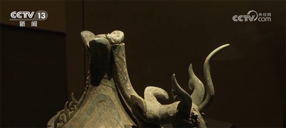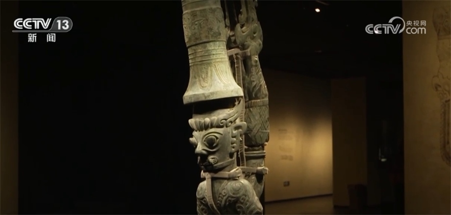 北京大學考古文博學院副教授 趙昊:為什么我們不直接把這件器蓋放在這個尊之上,或者包括那個持龍人像放在器蓋之上,這涉及到一個文物安全的問題。因為相對來說這些器物本體已經(jīng)有一些變形,第二就是它長期埋在地下,本體已經(jīng)變得比較疏松了,如果我們將它原來整體復原蓋在一起,重量會很大,可能對于下面的支撐壓迫比較重。