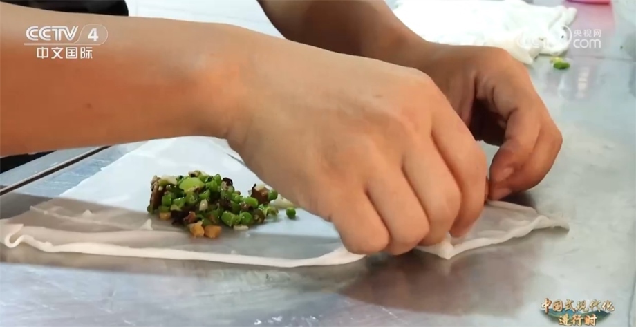 除了“射手王”,網(wǎng)友們還給他起了一個外號叫“卷粉王”。今年34歲的董永恒在縣城開了一家小店,售賣當?shù)貍鹘y(tǒng)特色美食卷粉。在球場上他腳底利索,沒想到手上更利落,董永恒一天要包1000多個卷粉。