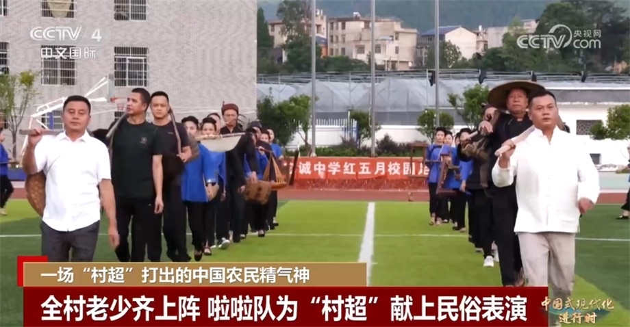 央視網(wǎng)消息:黨的二十大報告指出,中國式現(xiàn)代化是物質(zhì)文明和精神文明相協(xié)調(diào)的現(xiàn)代化。在廣大農(nóng)村地區(qū),農(nóng)民精神文化生活狀況是鄉(xiāng)村振興乃至經(jīng)濟社會發(fā)展全局的重要衡量指標。近年來,“土味”十足的“村BA”“村超”等農(nóng)民自發(fā)舉行的體育賽事火爆全網(wǎng)。正在貴州榕江舉行的“村超”本周六(7月29日)將迎來總決賽,今天的系列節(jié)目《中國式現(xiàn)代化進行時》,我們跟隨記者的鏡頭去看看“村超”的比賽盛況。