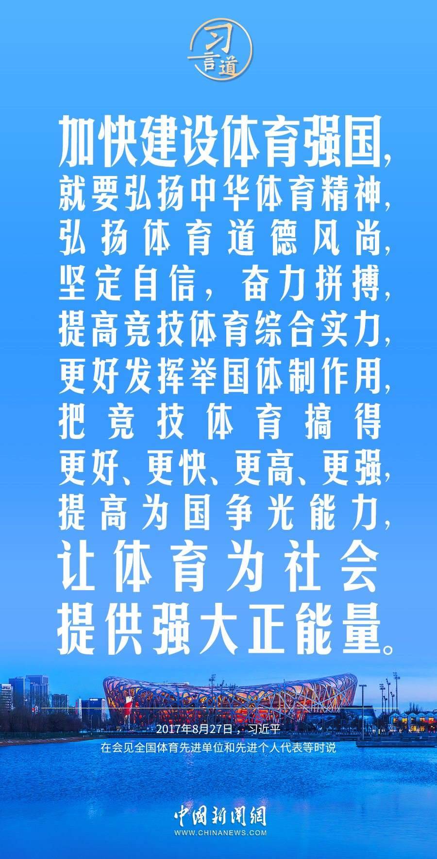 習(xí)近平總書(shū)記高度重視體育強(qiáng)國(guó)建設(shè),多次作出重要論述,強(qiáng)調(diào)讓體育為社會(huì)提供強(qiáng)大正能量。