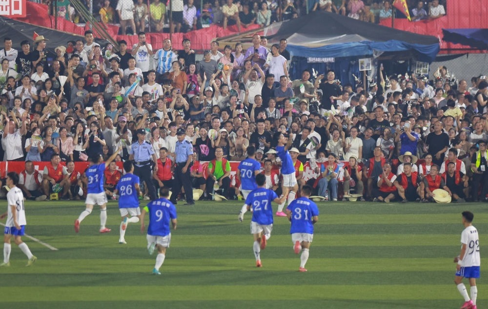 事實(shí)上,從5月13日舉辦以來(lái),“村超”球場(chǎng)上的激烈對(duì)抗就一直在不斷上演。“世界波”“貼地?cái)亍薄皥A月彎刀”……參賽的“村民選手”們屢現(xiàn)精彩進(jìn)球。