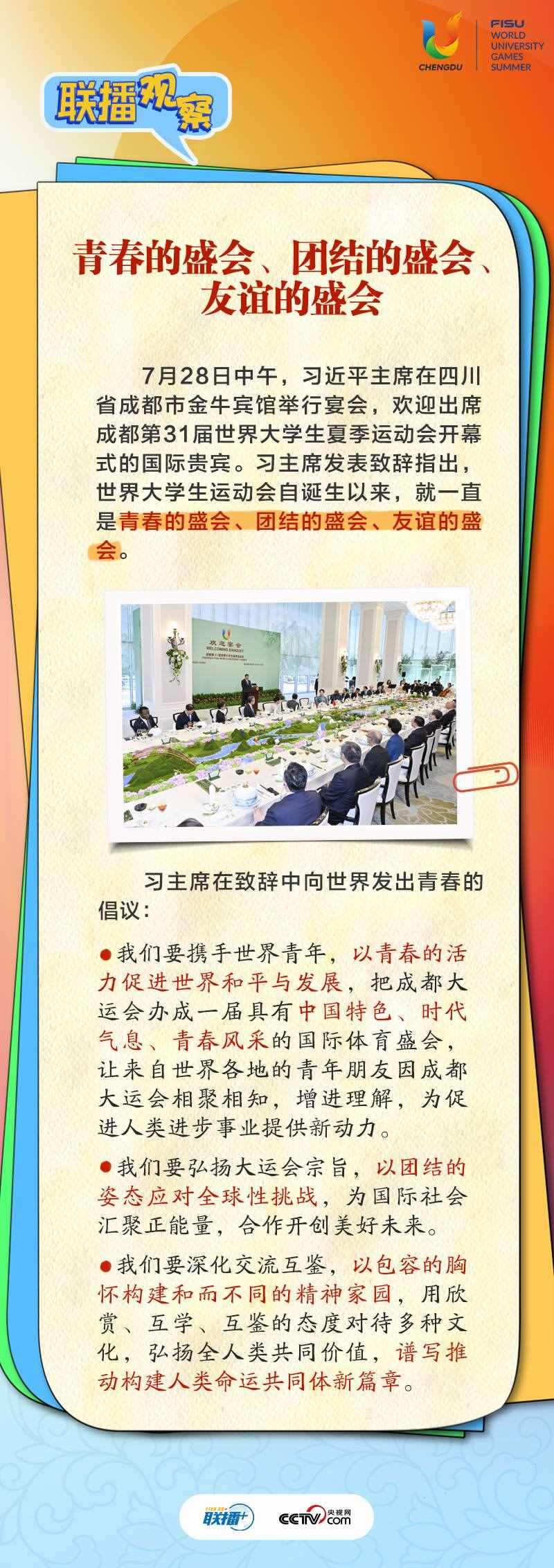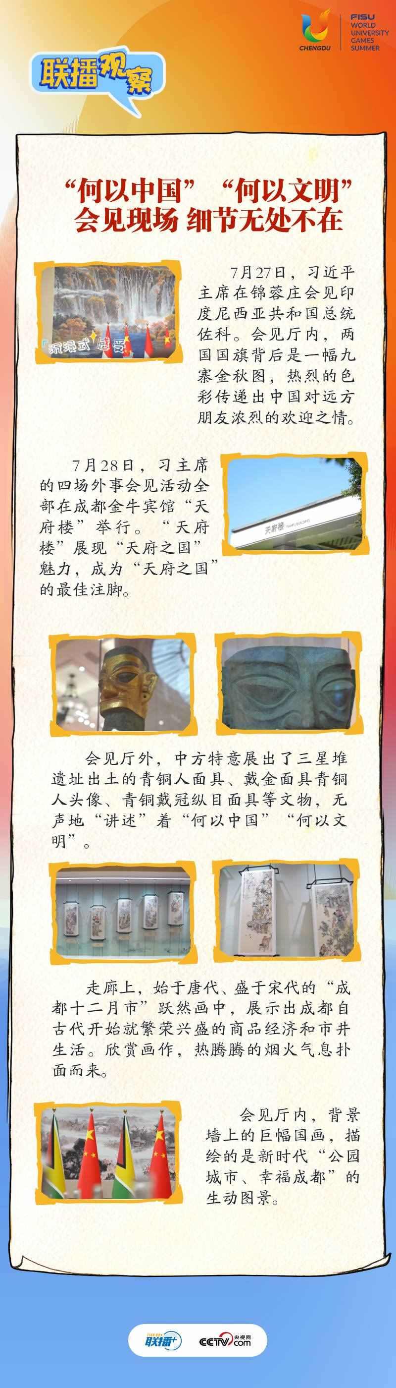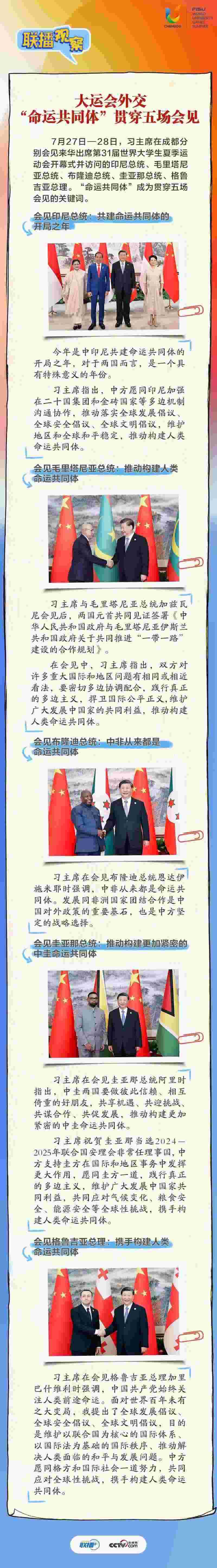 大運會時間,我國重要的主場外交也同步拉開帷幕,習近平主席的日程格外繁忙。央視網(wǎng)《聯(lián)播+》帶您沉浸式感受這場青春盛會為世界送出的別具匠心的“四川禮物”。