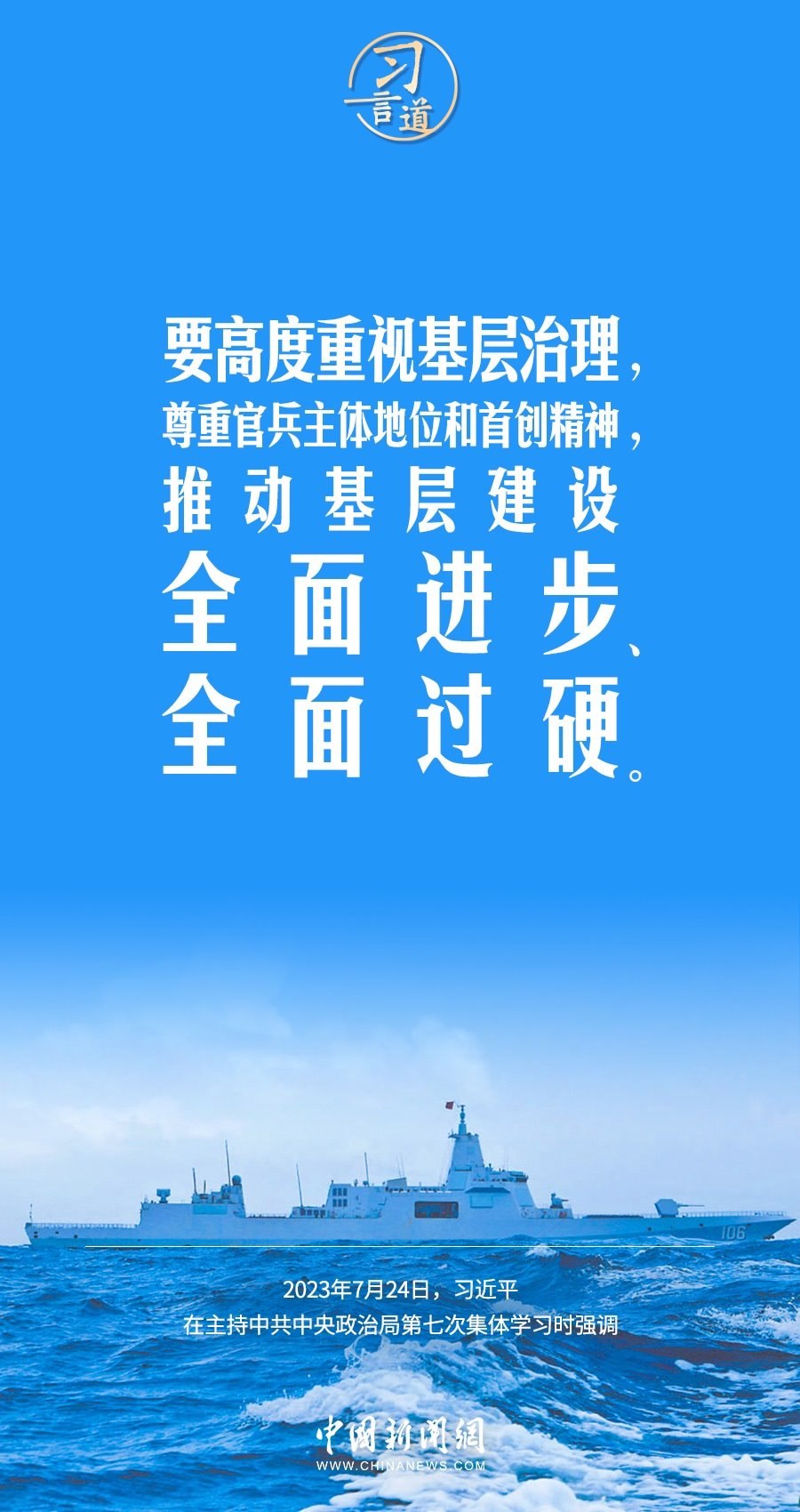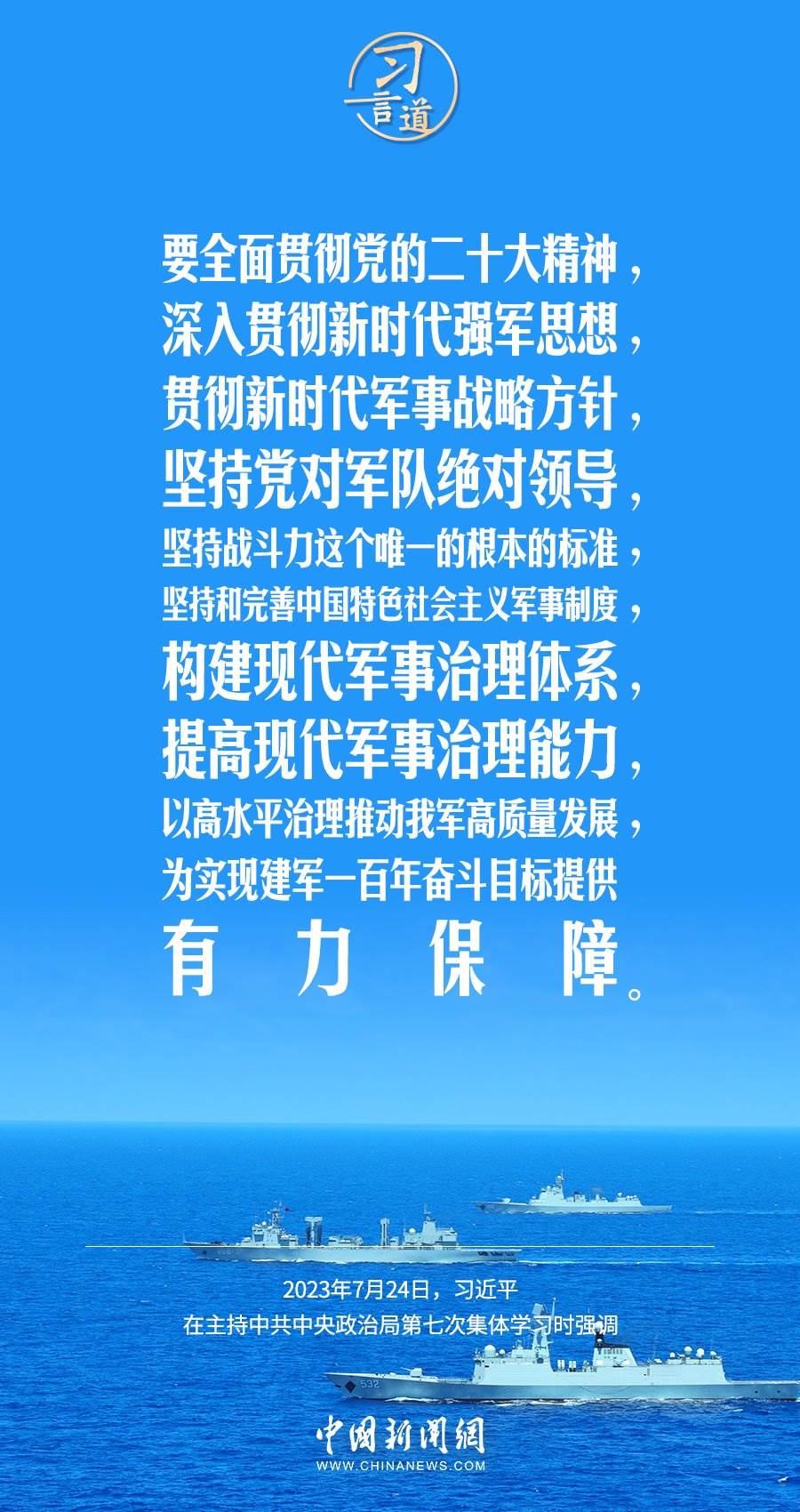 八一建軍節(jié)來(lái)臨之際,中共中央政治局7月24日下午就全面加強(qiáng)軍事治理進(jìn)行第七次集體學(xué)習(xí)。中共中央總書記習(xí)近平主持學(xué)習(xí),他強(qiáng)調(diào)——