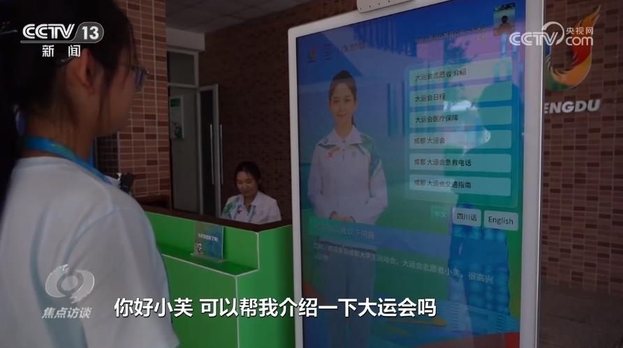 本屆大運(yùn)會(huì)的虛擬志愿者小芙,通過先進(jìn)的語(yǔ)音合成、AI口唇表情驅(qū)動(dòng)、圖像處理等技術(shù),能夠使用普通話、四川話和英文,和攝像頭識(shí)別出的對(duì)象進(jìn)行“面對(duì)面”的直接交流。這套系統(tǒng)的研發(fā)者之一雷曉輝是一名“90后”工程師。