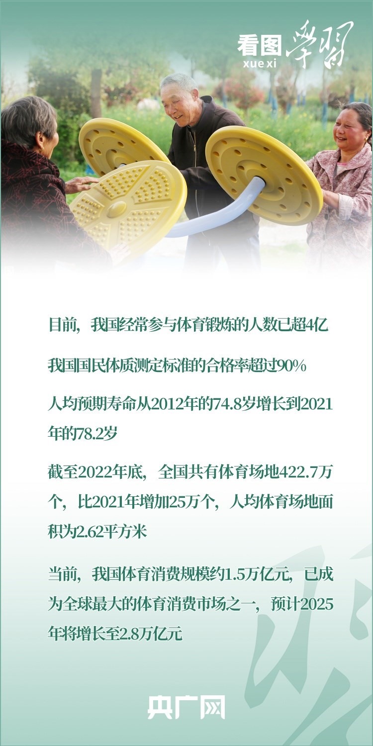 隨著我國(guó)城鄉(xiāng)居民生活水平不斷提高,運(yùn)動(dòng)健身日益成為我們?nèi)粘I钪械囊豁?xiàng)重要活動(dòng)。2014年,我國(guó)將全民健身上升為國(guó)家戰(zhàn)略。習(xí)近平總書記親自謀劃、親自推動(dòng)全民健身事業(yè)發(fā)展,對(duì)實(shí)施全民健身戰(zhàn)略、加快建設(shè)體育強(qiáng)國(guó)作出系列重要論述。今天(8月8日)是第15個(gè)全民健身日,一起來(lái)學(xué)習(xí)!