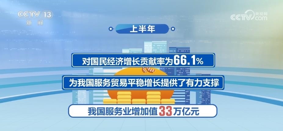 2023年以來(lái),國(guó)民經(jīng)濟(jì)持續(xù)穩(wěn)定恢復(fù),服務(wù)業(yè)保持較快增長(zhǎng)。上半年,我國(guó)服務(wù)業(yè)增加值33萬(wàn)億元,同比增長(zhǎng)6.4%,占GDP比重為56%,高于上年同期1.6個(gè)百分點(diǎn),對(duì)國(guó)民經(jīng)濟(jì)增長(zhǎng)貢獻(xiàn)率為66.1%,為我國(guó)服務(wù)貿(mào)易平穩(wěn)增長(zhǎng)提供了有力支撐。