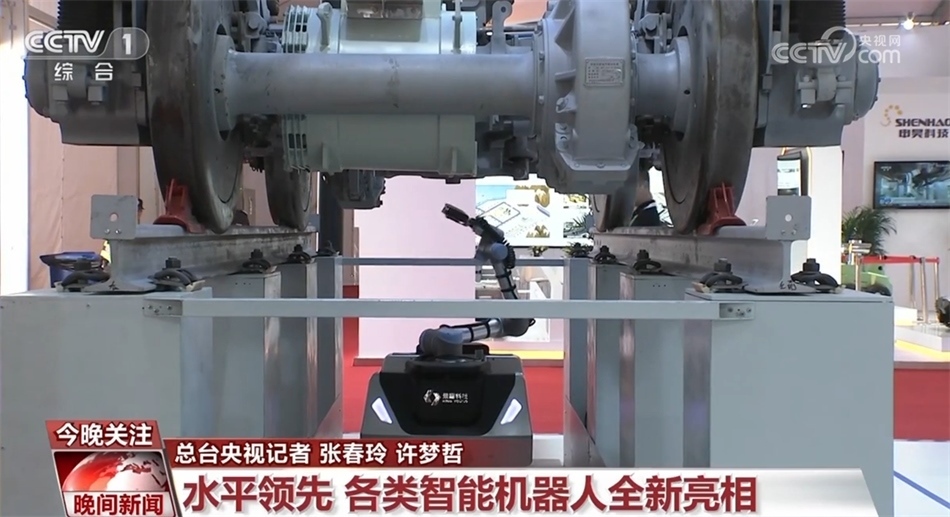 現(xiàn)在您看到的是一款列車智能巡檢機(jī)器人,它可以替代成熟的技術(shù)工人自主采集車底、車側(cè)高清圖像和3D數(shù)據(jù),巡檢定位精度達(dá)到正負(fù)5毫米。