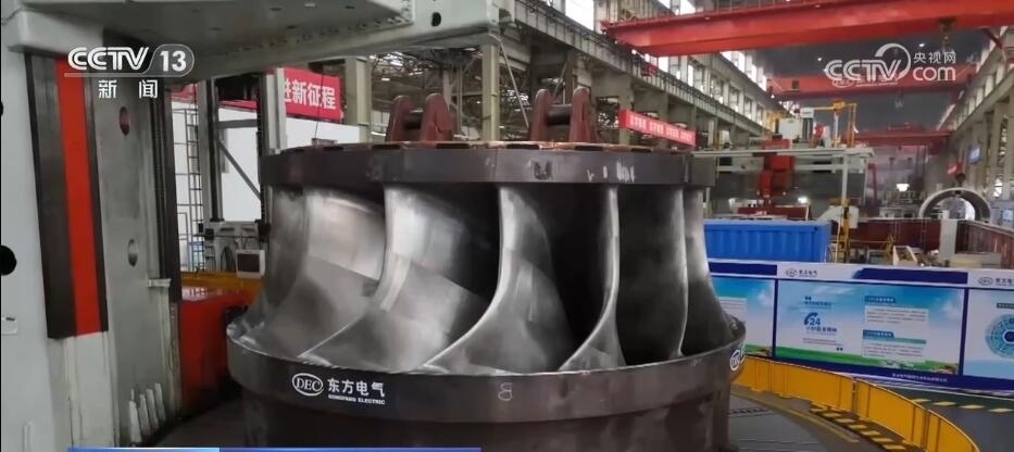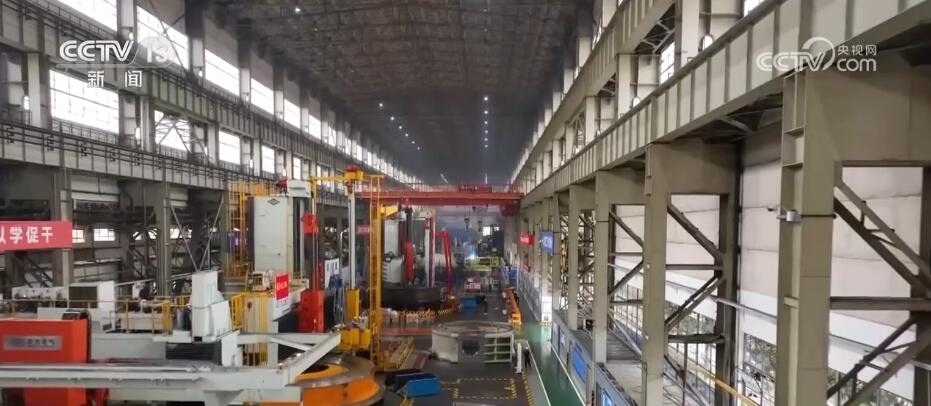 總臺記者 蔣林:我現在就是在位于四川德陽的東方電機的生產車間,這里也是目前中國最為重要的能源裝備的制造基地。現在一天全國所發(fā)的電量里面,每4度有1度就來自于這里的設備。而且根據我們掌握的最新的生產數據,也能夠感覺到目前中國能源發(fā)展的新趨勢。截止到2023年的6月底,在過去一年當中,這里所生產的設備里有90%都是清潔能源的設備。比如,我身旁的這個大家伙,它是華龍一號發(fā)電機組的轉軸,而像這樣的大塊頭在這個廠房里面比比皆是。