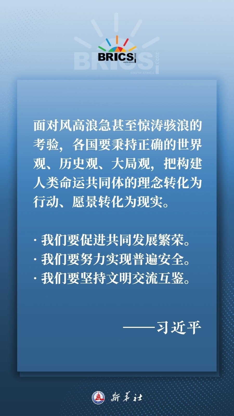 當?shù)貢r間8月22日下午,國家主席習近平向約翰內(nèi)斯堡金磚國家工商論壇閉幕式發(fā)表致辭,為各國深化團結(jié)合作、應對風險挑戰(zhàn)、共建更加美好的世界指明方向——