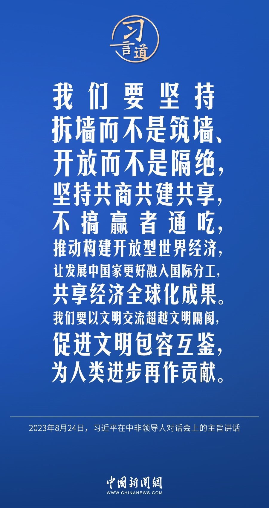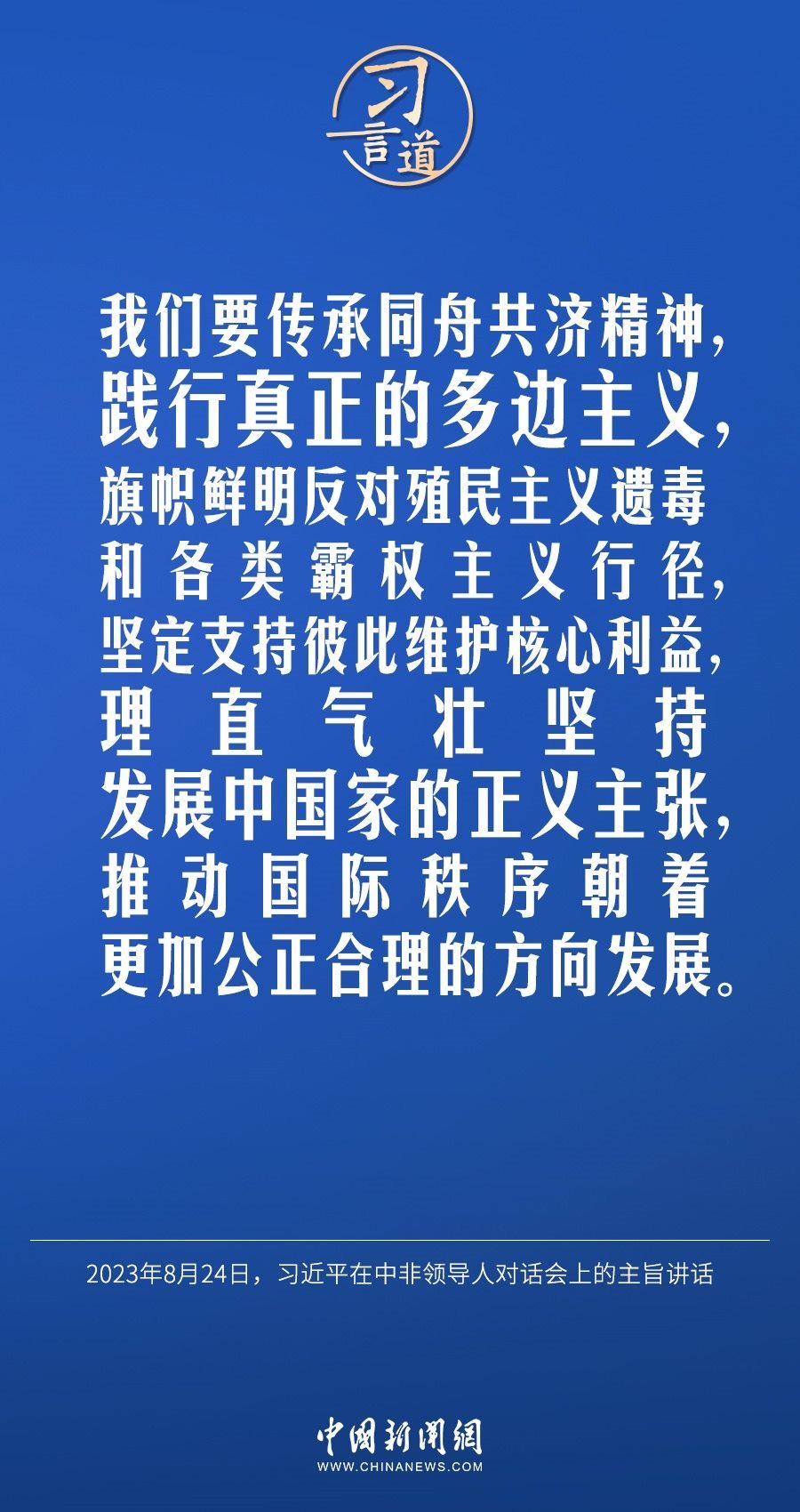當?shù)貢r間8月24日晚,國家主席習近平和南非總統(tǒng)拉馬福薩在約翰內(nèi)斯堡共同主持中非領導人對話會。習近平發(fā)表題為《攜手推進現(xiàn)代化事業(yè) 共創(chuàng)中非美好未來》的主旨講話。習近平指出——