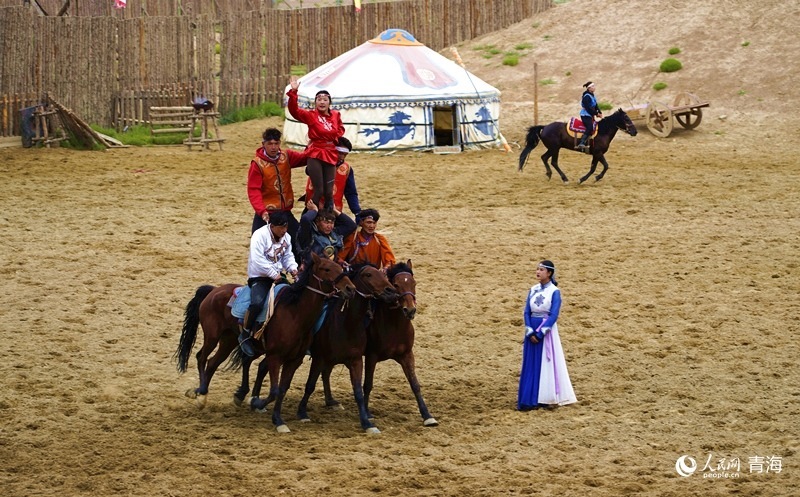 大型實景馬術(shù)演藝劇印象茶卡之《草原英雄-成吉思汗》。人民網(wǎng)記者 楊啟紅攝