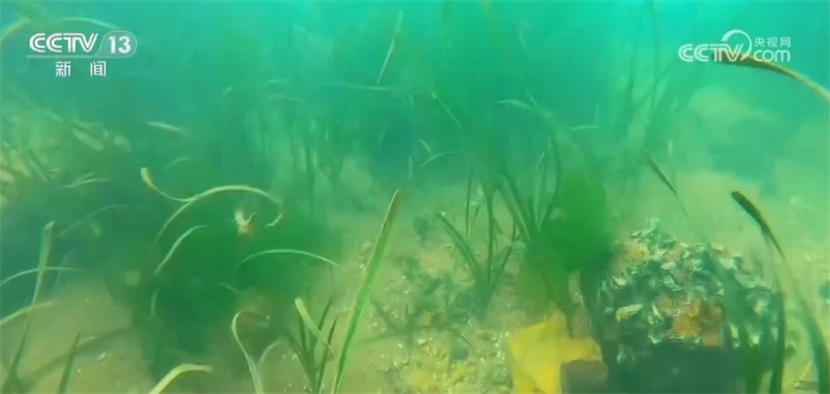 河北省近海生態(tài)修復(fù)工程技術(shù)研究中心負責(zé)人 張振海:現(xiàn)在看到的這個畫面,是我們“貝藻礁生態(tài)系統(tǒng)重構(gòu)技術(shù)”的實時景象,過去海底不是這樣的,海底整個是一片荒漠化的,在貝藻礁生態(tài)系統(tǒng)創(chuàng)新以后,海藻逐漸茂盛起來,海洋生物物種增加了十幾種,海洋生物總量提高了四十倍以上。