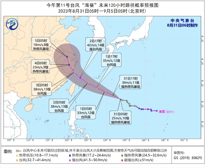 降雨方面,受臺風“蘇拉”和南下冷空氣共同影響,8月31日至9月3日,廣東大部、福建中南部、臺灣南部有大到暴雨,廣東中東部、福建東南部有大暴雨、沿海局地特大暴雨。其中,今天白天到夜間,福建東南部、廣東東部、臺灣島中南部的部分地區(qū)有大到暴雨,局地有大暴雨(100-220毫米)。另外,9月2日起受臺風“??庇绊?,浙江等地將有較強降雨。