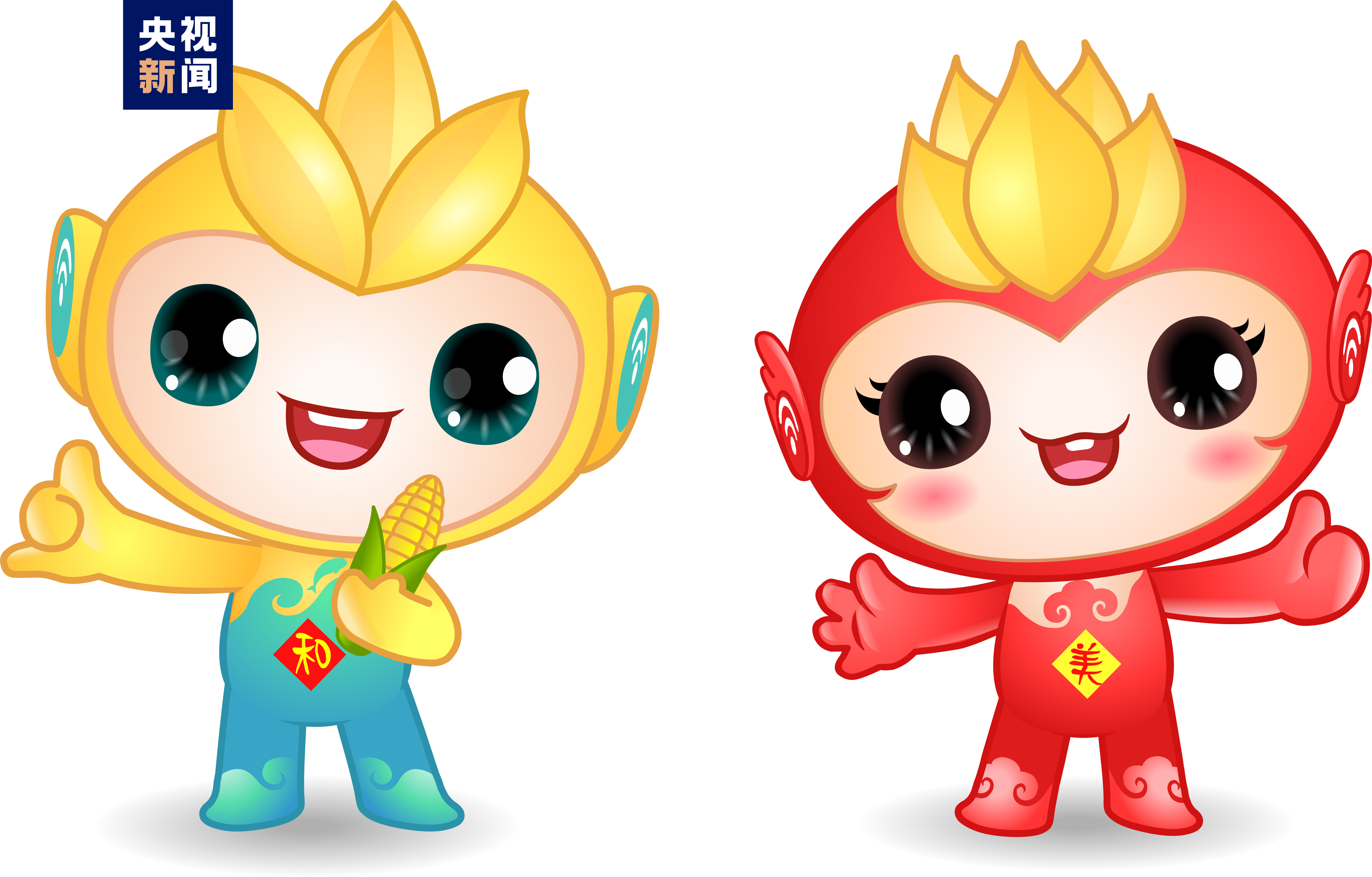 此外,今年中國農民豐收節(jié)的吉祥物是“和和”“美美”兩個卡通IP形象,表達了億萬農民甜甜美美的豐收喜悅、和和睦睦的幸福生活。IP卡通形象的整體設計,以三大主糧“稻谷、麥穗、玉米”為造型元素,突出豐收節(jié)屬性,融入傳統(tǒng)文化符號與現代信息符號,傳遞豐收、喜悅、吉慶和農業(yè)現代化等寓意。其中,“和和”是一個男孩形象,頭上三粒稻谷,既代表種子,又代表三生萬物,繁榮不息。藍色波浪代表長江,江豚魚躍而上,寓意長江之畔,魚米之鄉(xiāng),風調雨順?!懊烂馈笔且粋€女孩形象,頭上五顆麥粒,寓意代表五谷豐登,表達了對農民的最美好祝愿,融入了翅膀元素,昭示著中國農業(yè)展翅騰飛,開創(chuàng)新未來。吉祥物的眼睛和耳朵上分別含有信息、數字科技元素,寓意以科技眼、智慧耳賦能現代農業(yè)騰飛,反映了科技賦能、智慧富農的新時代現代農業(yè)特征。色彩以黃色和紅色為主,分別代表耕地和喜慶,也是豐收黃和中國紅,是農民和豐收的最直觀體現。起名“和和、美美”,表達了億萬農民喜氣洋洋的豐收喜悅、幸福和美的美好生活。